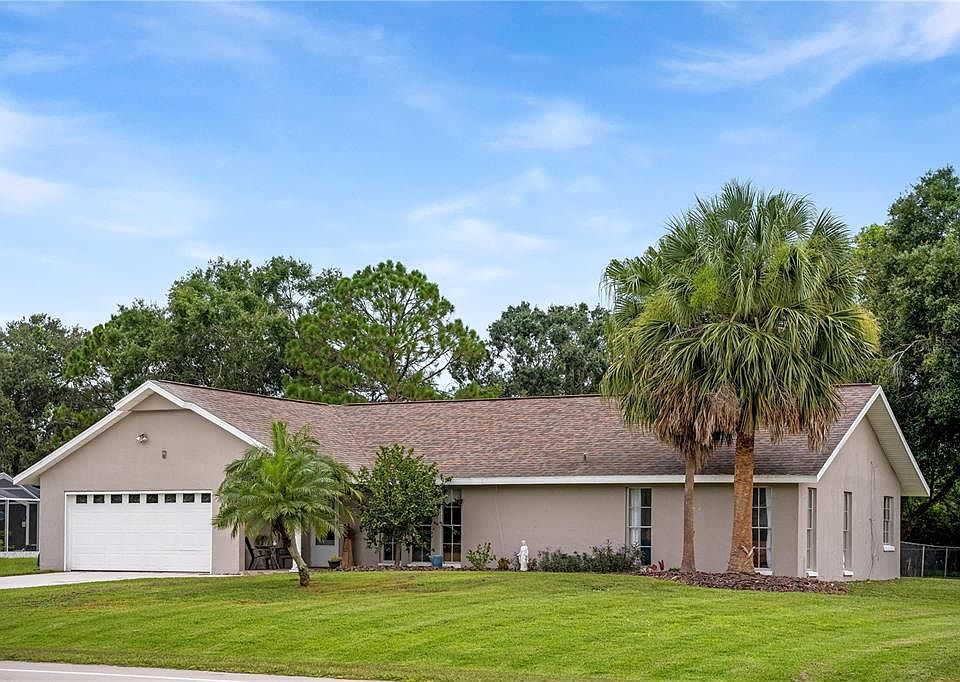 How many opportunities have you had to own your own property in Florida without always being in the hustle and bustle of the city traffic? Well now is your chance to get a great home on a great sized lot without having the major upkeep of acreage and also without being so close to your neighbors. This concrete block house has a newer roof within 5 years, 2 bedrooms with another bonus room that is large enough to be a third bedroom and is being used as such currently but does not have it's own closet, 2 bathrooms, and a separate living and dining room. The kitchen has a nice bar area as well as am eat in area on the other side of the bar, stainless appliances, freshly painted cabinets, and solid surface countertops. There are sliding windows that open up in the kitchen that overlooks the back yard as well as can be used for entertaining on the back screened patio. All of the rooms in the house are spacious with ceramic tile throughout and the master bedroom having a newly remodeled bathroom within the past few years. The back yard is fenced in, however there is more useable yard on both sides of the fence outside of where it is currently located. Plenty of space in the 2 car garage and a nice long driveway for multiple car parking. A new shopping center is getting ready to be built close by and there is also a golf course just around the corner. Come take a look at this one quick before its gone.