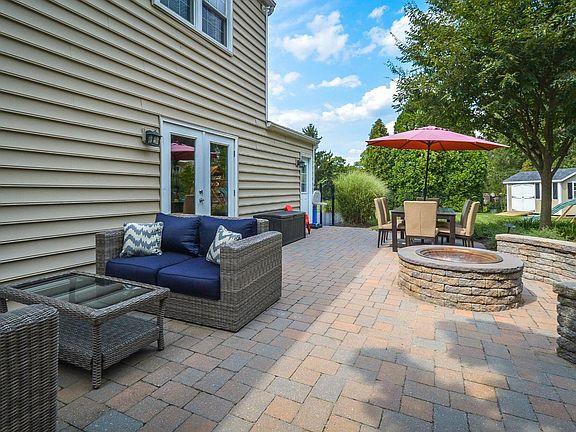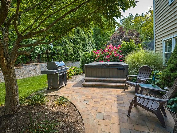 It's the one you've been waiting for - that big, pretty house at the end of the cul-de-sac with the fenced yard, fabulous outdoor living space, five bedrooms and 2800 SF. It's a winner! Just some of the highlights: E.P.Henry patio with built-in fire pit, plenty of room for dining and entertaining plus a hot tub! There's a fenced yard, playset, shed, beautiful retaining wall and landscaping. Have a party the day you move in. And inside is just as nice - hardwood floors in many rooms, gorgeous living room with built-in bookshelves, crown molding, wood stove, raised brick hearth and a big window for lots of sunlight. A formal dining room worthy of the name leads you to the lovely kitchen with granite counters, newer stainless appliances (Bosch DW, french door fridge, double oven), tile backsplash, pantry wall of cabinets, beautiful island ready for serving or snacking and plenty of room for your breakfast table and server. Just a step away is the family room for TV and relaxing as well as the atrium doors to the patio. A bonus room or playroom is just beyond the family room and has a separate door to the garage. The first floor also features the laundry and powder rooms. Five (yes, five) bedrooms and two full baths are all upstairs and they are surprisingly generous. The master bedroom is a retreat with beautiful scraped hardwood floors, remodeled walk-in closet with built-ins and a completely modern, tile bathroom with large shower and seamless glass doors. The hall bath is fully renovated with subway tile, glass block and all new everything. No worries about updating with a newer HVAC system and newer vinyl siding and lots of improvements throughout. You won't want to miss this one.
