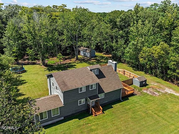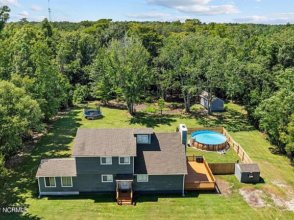 Right on the southern edge of quiet Hampstead is a gorgeous old neighborhood, Washington Acres- and your next home! Only two minutes off US 17, this beautiful property is only 20 minutes from both the center of Wilmington and Topsail Island, the best of both worlds! Tucked away from the hustle and bustle, one can enjoy the green serenity and wildlife that envelops this 1 acre lot, giving the country feel while being just outside the city. Complete with masterful renovations, this two-story property enjoys a vast, open yard, a fenced in above-ground pool, a large, sturdy deck, a storage shed, and privacy from the road and neighbors with the surrounding trees. No HOA, no hassle. Absolutely stunning interior with fresh paint on the walls, downstairs primary bedroom and three additional rooms upstairs. Come schedule an appointment to check it out today!