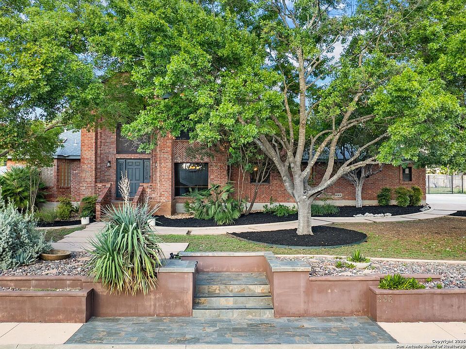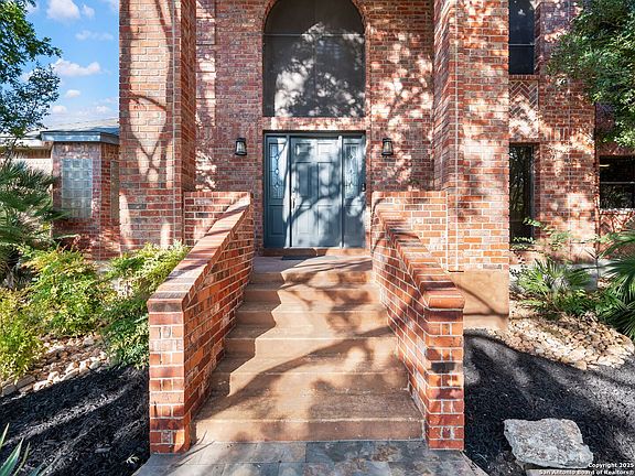 Experience refined living in this Castle Hills residence, where open living areas are designed with comfort and style in mind. A soaring two story family room anchored by a floor to ceiling brick fireplace creates an inviting centerpiece for gatherings. Oversized brick laid tile flooring and upgraded lighting enhance the interiors with a clean and timeless aesthetic. The chef's kitchen is outfitted with a Wolf brand stove, double Thermador ovens, upgraded countertops, custom cabinetry, and a stainless steel farm sink, offering both function and elegance for everyday living and entertaining. The master suite provides a private retreat with a sun filled bathroom, while upstairs you'll find spacious guest bedrooms, a large study, and a generous game room with additional flex space. Outdoors, the home is set on an oversized .4672 acre lot featuring extensive patio decking surrounded by mature trees in a tranquil park like setting. Solid masonry brick and stucco construction is paired with significant system upgrades, including a roof replaced in 2018 and Rudd HVAC units replaced in 2024 and 2022, providing comfort and peace of mind for years to come. With ample overflow parking and a prime location in Castle Hills, this residence blends convenience, durability, and timeless appeal.