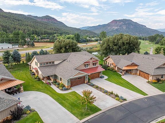 GORGEOUS AND METICULOUSLY MAINTAINED TRIMBLE CROSSING TOWNHOME IN THE HIGHLY SOUGHT AFTER ANIMAS RIVER VALLEY! Surrounded by dramatic red cliffs and lush greenery, this home offers the perfect combination of effortless luxury, livability, and lock-and-leave convenience, all just 10 minutes from downtown Durango and 20 minutes from Purgatory Resort. The Kennebec floor plan is the largest and most sought-after in Trimble Crossing, which showcases an open, light-filled living space with vaulted ceilings, rich hardwood floors, recessed lighting, and expansive skylights. As an end unit, it has great privacy as well as a spacious, airy feel. Anchoring the great room is a beautiful stone-surround gas fireplace with a rustic wood-beam mantel, creating an inviting focal point. The gourmet kitchen is designed for both function and beauty including a full GE Profile appliance package, beautiful granite countertops, and rich wood cabinetry. On the main level, the primary suite is a peaceful retreat with stunning cliffside views, and a spa-like bath with dual vanities, a walk-in tiled shower, soaking tub, and spacious walk-in closet. Upstairs, a versatile loft provides space for a home office, reading nook, or creative studio. A second ensuite bedroom includes its own full bath, walk-in closet, and finished storage area. There is also a spacious third bedroom on this level as well. Additional features include a well-appointed laundry room with cabinetry and utility sink, plus a spacious two-car garage. Recent updates include an entire new roof this year (2025), the entire interior of the house was recently repainted and the entire upstairs area and stairway has been recarpeted. Step outside to one of the largest covered patios in the community. This private retreat functions as a true second living room, ideal for relaxing, entertaining, or enjoying Colorado’s four seasons year-round. Trimble Crossing itself is a beautifully landscaped community with tranquil ponds, and the HOA takes care of all exterior maintenance, landscaping, and snow removal — offering a truly low-maintenance lifestyle. Conveniently located within walking distance of PJ’s Market and Trimble Hardware, and just moments from Dalton Ranch Golf Club, this home blends natural beauty, thoughtful design, and an unbeatable location.