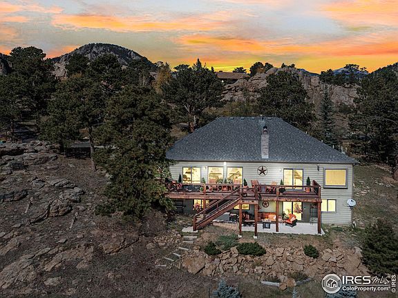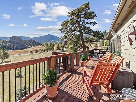 Come home to Estes Park! This stunning mountain home is a true haven. Big views & plenty of room await within 4,000+ square feet of quality home. Located in Arapaho Meadows, in the south end of the Estes Valley, Twin Sisters Mountain and The Crags fill the view & Deer & Elk wander through. You'll love this 5 BR home with open floorplan flowing nicely to the expansive kitchen, & large dining area. The spacious living areas are flooded with natural light, perfect for relaxation and entertaining. Imagine snuggling up by the fireplace or hosting unforgettable gatherings, both inside and out on the big deck with its panoramic mountainscape. Nature's beauty will be your constant companion. Downstairs has a huge family room with a gas-log fireplace and a bar area, an exercise room, 2nd office, and a big patio. Only 10 minutes to Rocky Mtn Nat'l Park and downtown Estes Park. Easy living home with open layout main level, huge family room and gigantic deck! Wood floors throughout & Granite in the kitchen. Enjoy the best of mountain living with tranquility & spectacular views of the Estes Valley in this meticulously maintained home situated on 3/4 acres in one of Estes Park's nicest neighborhoods. Imagine the perfect blend of privacy & easy access to downtown Estes & Rocky Mountain National Park. Come home to Ute Ln and find peace in mountain moments.