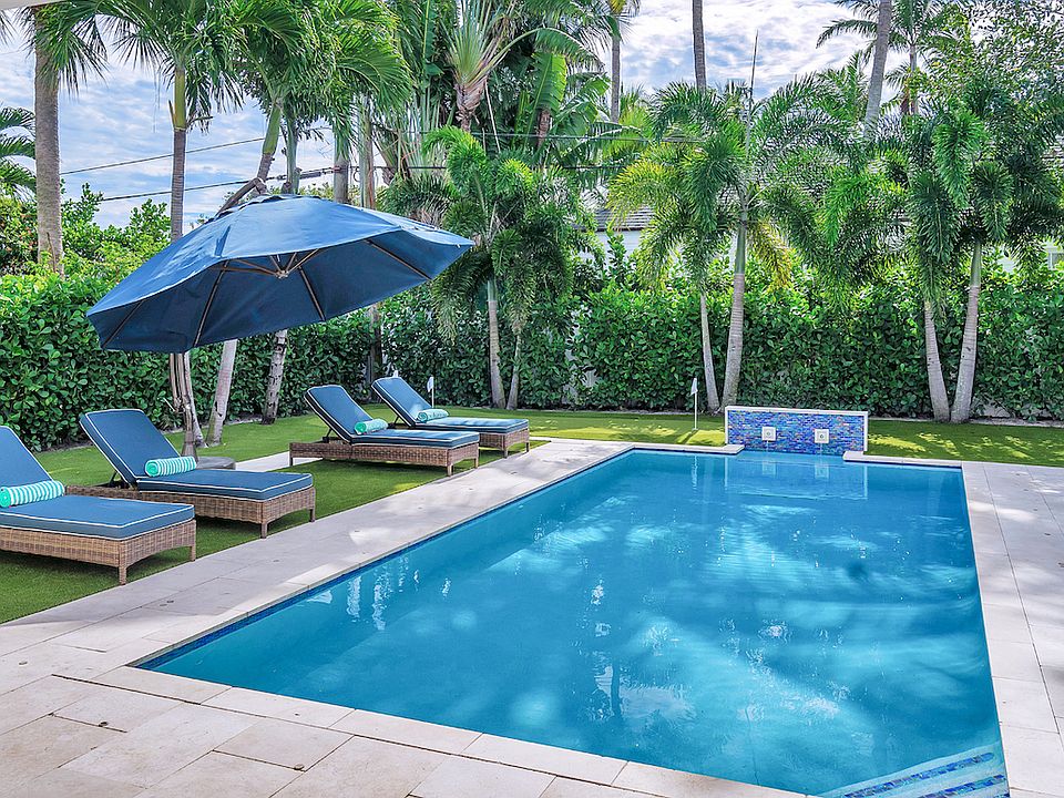 Kick back, relax, and enjoy a home designed for fun and comfort. This West Palm Beach retreat features a heated pool, putting green, outdoor dining, indoor games, and spacious living areas. With cool A/C, Smart TVs throughout, luxury bedding, and plenty of room for groups, this home is the perfect base for your Florida stay. The Space This property offers a wide range of amenities including a heated pool, outdoor barbecue, expansive patio, fully stocked kitchen, indoor and outdoor dining areas, multiple living spaces, and five beautifully appointed bedrooms. Located in one of West Palm Beach's most desirable neighborhoods, you'll be just minutes from dining, shopping, beaches, and attractions. Highlights * Smart TVs throughout * High-speed internet * Heated pool (additional fee applies) * Fully walled and hedged backyard oasis * Putting green & cornhole * Safe, residential neighborhood * Luxury bedding & bath amenities * Kid-friendly: door alarms to pool, kid dishes, crib, and highchair Bedroom Layout * Master King Suite: Walk-in closet, Smart TV, private ensuite bath with soaking tub + glass shower. (Attached bunk bedroom with privacy door.) * King Suite (Main Floor): Walk-in closet, Smart TV, private bathroom with glass shower. * Queen Suite: Walk-in closet, Smart TV, private bathroom. * Queen Bedroom: Large closet, Smart TV. Total Sleeping Options: 2 Kings, 2 Queens Outdoor Features * Crystal-blue pool (heating optional) * Covered patio with dining for 8 * BBQ grill * Loungers for sunbathing * Large private backyard Indoor Dining * Dining room seats 6 * Small dining nook seats 4 * Kitchen bar seating for 4 Parking * Driveway and garage parking available Location In a premier West Palm Beach neighborhood, walkable to the Intracoastal and minutes to top destinations: * Downtown West Palm Beach 10 min * The Breakers 15 min * Lake Worth Beach Park 11 min * Palm Beach Zoo 5 min * Convention Center 11 min * Worth Avenue 12 min Walkable To: La Casa Del Mofongo, Station2Fitness, Carvel Ice Cream, La Sirena, SouthEnd Kitchen & more. Owner pays landscaping and pool maintenance. All other utilities covered by tenant. 12+ month lease