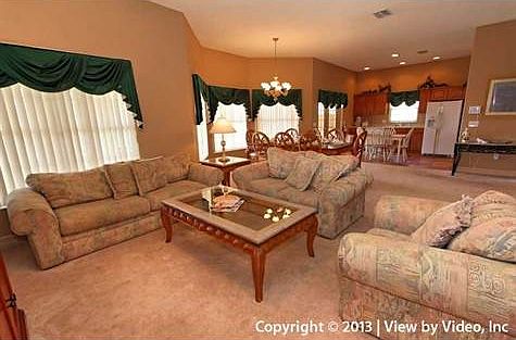 Spacious home minutes to Disney World (you can see fireworks form pool). Makes the prefect vacation home. Used mostly for private use and some guests this home is in great shape and MOVE-IN READY. A 5 Bedroom 4 bath homes comes with 2 MASTER SUITES which feature IN-SUITE BATHS. Located in a GATED community that is five minutes (to ten) from DISNEY WORLD - you can reach the park without encountering the traffic of the I-4 or the 192. The POOL features a covered lanai and brick pavers that require limited maintenance. The spacious pool looks out over to the Disney parks where at night you can see the fire works. The AC has been recently upgraded along with the water heater. ALL APPLIANCES and FURNITURE are included (red rose rug in living room, Dancer artwork, vintage Disney posters in 2nd floor hallway, contents of owners closets do not convey). *HOA fees, Room Dimensions should be independently verified. Maitenence includes: gated community and ground maintenance of common areas.