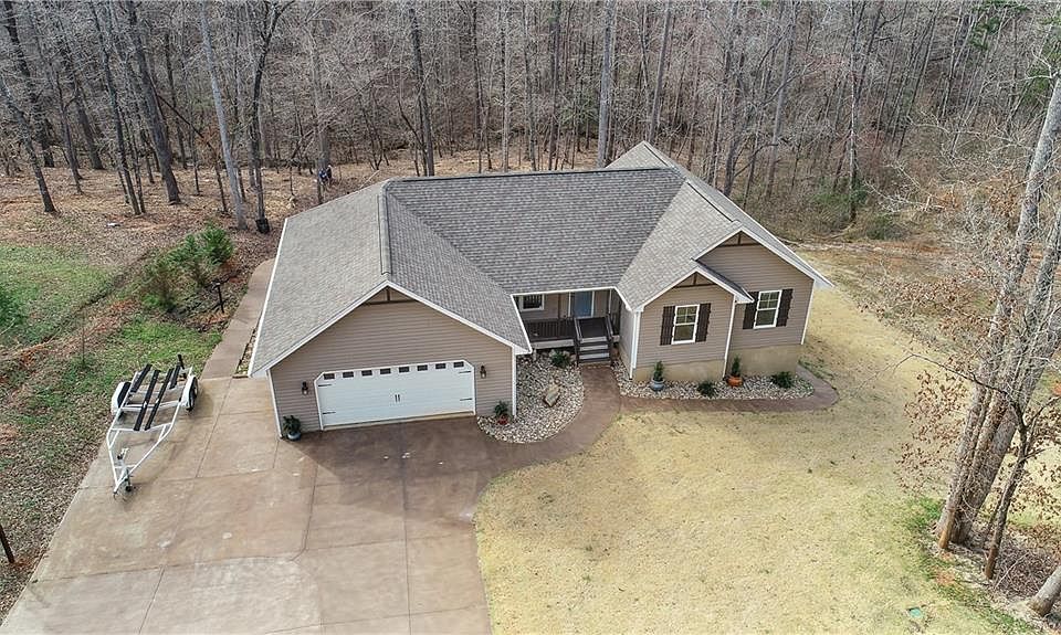 Impressive 4 bedroom, 3 bath home with amazing open floor plan features. As you enter the home you are welcomed by the vaulted ceilings and bright living area. The attractive porcelain tile throughout the main level has the appearance of distressed wood without the maintenance. The kitchen features black stainless appliances, wood cabinetry and tile back splash. Walk out of kitchen onto the grill deck and enjoy views of the lush back yard and 1.82 acres (two lots). The main level features three bedrooms and two full baths including a large master suite with tray ceilings, walk-in closet and full bath. Take the stairs just off of the kitchen down to the custom lower level where you will find ultimate entertaining space. There is stunning herringbone porcelain tile throughout, distressed cabinetry with a wet-bar, a stacked stone electric fireplace, rec room and living area perfect for those movie nights. The full bath features a tile walk-in shower with a rainfall shower head. The lower level is also equipped with a guest room complete with a murphy bed, built-in shelving and oversized walk-in closet. There is also a hobby room that could be converted for extra sleeping space. Follow through the sliding glass doors to a covered patio area, an outdoor fireplace, LED lighting and hidden rock speakers. Solar LED lights surround the home and along the rock wall to illuminate your way around the house. A cleared path leads down to the creek that has been cleared in several different areas. Beautiful landscaping surround the home and there is an irrigation system in place. You will also find an oversized garage with cabinetry. There is ample parking and the concrete has been stained a rich brown color to blend in with the natural vegetation and wooded setting. The property is central located between Clemson and Seneca and is only a short distance to Lake Hartwell. Call today to schedule a private showing!