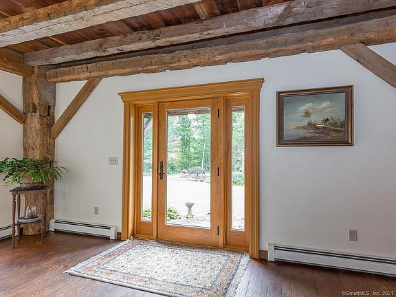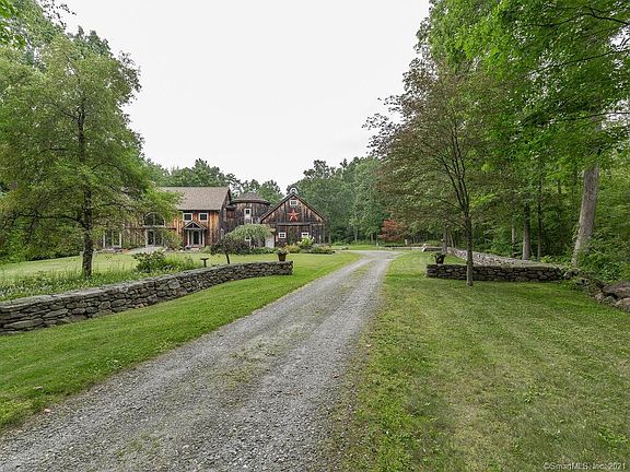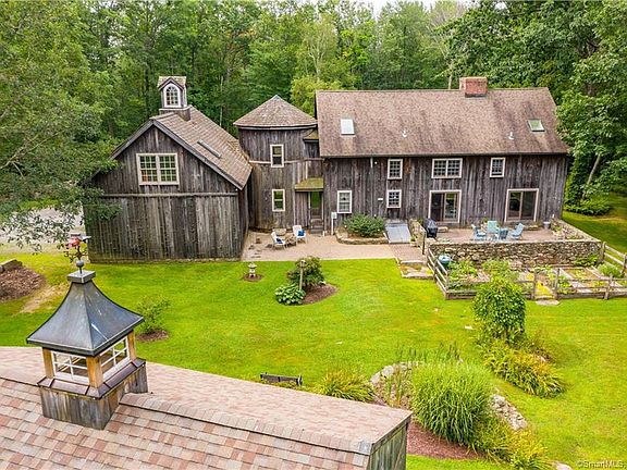 This magnificent barn home is worthy of it's own HGTV show! From the moment you step inside the welcoming foyer the details of the hefty chestnut beams, 3 stately stone & brick fireplaces, countless windows & glass doors it's hard to know where to look first. The main level consists of an open concept kitchen, dining & living spaces with a silo (YES, A SILO!) that connects the main house with a huge 3-bay garage w/ high ceilings and walk-up 2nd fl for storage or expansion. The main level silo is a perfect home office or the most impressive mud room ever! The 2nd fl boasts a comfortable master suite w/ vaulted ceiling, fireplace, full bathroom & reading balcony overlooking the main level. The cozy 2nd bedroom shares a full bathroom w/ the 3rd "silo" bedroom w/ a DOMED ceiling. A casual sitting area at the top of the stairs along w/ an office nook completes the 2nd level. The outside... well, where to begin!? Set on 4.3 level acres the property has the perfect combination of woods, pasture area w/ split rail fencing, an adorable potting shed and a 23'x26' barn for your horses or big toys! The huge stone patio takes in the views to the private and serene backyard w/ manicured lawn, perennial gardens and stonework galore! An ideal location just minutes to West Hill Lake, Brodie Park, New Hartford Center, hiking trails & the Farmington River. This one-of-a-kind property exudes an abundance of character & old world craftsmanship... simply a beautiful place to call home!