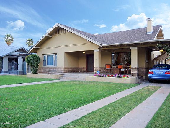 Grand 1918 Historic home on one of the best palm-tree-lined streets in Roosevelt Historic District! This beauty has wonderful wood moldings throughout, extra high ceilings with recessed lighting, original, recently redone hardwood flooring, cozy fireplace and nice large rooms. Two of the bedrooms have doors leading to the backyard deck and overlook the large, lush backyard with sparkling pool complete with waterfall. A few bonus features: main bath with unique, one-of-kind vanity, artistic light fixtures, 16.5 x 13.5 finished basement, and vintage 1-car garage/workshop. Close to everything cool about Phoenix: Roosevelt Row and Grand Ave. Arts Districts, Deck Park, Light Rail, Museums and Galleries, Public Library, and numerous local restaurants!