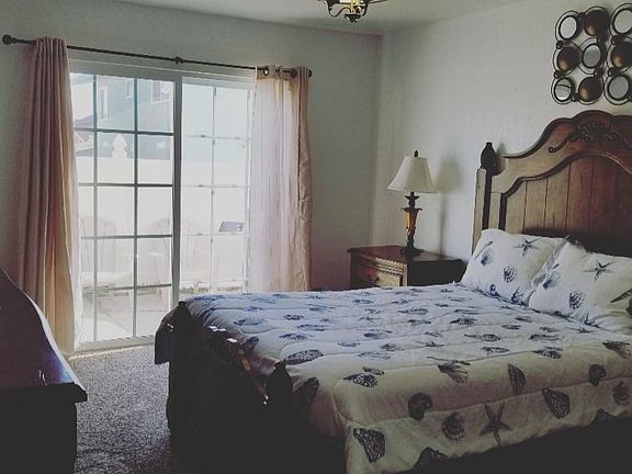 This is a remodeled beautiful 3 bedroom 2 1/2 bath two Story home. Each room is unique and has its own flare of style and comfort. As you enter the home your welcomed into the foyer that leads to 2 bed rooms that are both complete with flat screen TV's and a queen bed in each room with patio access. Their is a shared bathroom complete with a Sauna and Jacuzzi bath tub. The Laundry room is also on the first floor. The Second floor features a Beautiful Open Kitchen and Dinning Room that opens up into the Large Living Room with 2 sofa sleepers and Ample seating and space for you and your family also has a Vanity Bathroom available. The Master Suite is off the Kitchen , as you walk into the room you are taken away by the ample space this room provides. Their is a King Size Bed with a bathroom and fireplace, plus seating to relax. This room also has a flat screen TV. The home comes with WiFi and cable. The Patio is equipped with BBQ Grill, table and chairs. You will feel like your right at home in this house. The Kitchen is fully stocked with all your kitchen necessities. Their are also 2 queen air mattresses, 1 twin cot and Linens, Towels and extra blankets.
