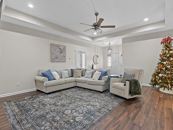 Step into this beautifully updated 3-bedroom, 2-bath home, where comfort meets contemporary style. The welcoming entryway leads seamlessly into a spacious living area featuring updated flooring and an elegant electric fireplace, perfect for cozy evenings. The thoughtfully designed split floor plan ensures privacy, with the primary suite tucked away from the secondary bedrooms. The primary suite boasts a striking accent wall, adding character and charm to your personal retreat. Enjoy outdoor living at its finest with a brand-new covered concrete patio, completed in November 2024. This space is perfect for relaxing or entertaining while overlooking your backyard oasis. With its modern upgrades and inviting layout, this home is a must-see!