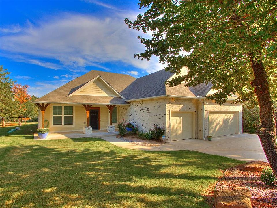 What's better than living away from the city but within minutes of highway access? This location can't be beat if you are looking for a bigger lot with trees, privacy and a nearly new home! Just minutes from I-35, this gated neighborhood a tree-lined paradise! As you pull to the front of the home, the meticulously maintained yard and well built elevation will take your breath away. Step in the front door to the open floor plan with views to the luscious backyard. An office with great lighting makes the workspace inviting! The secondary bedrooms, complete with an upgraded bathroom, are separate from the primary suite. The living room is spacious and open to the kitchen and is perfect for entertaining. The kitchen has all of the design details you are looking for plus functionality and plenty of storage. As you enter the primary suite, the tall ceilings and large windows make it the perfect place to relax. Step into the en-suite with granite counters and tons of closet space with built-ins. The entire home has custom remote window shades that are controlled at the touch of a button. One of the selling points of the home is the enclosed back patio with the outdoor fireplace for enjoying those cooler fall evenings as you look out onto the backyard. A full sprinkler system will have this yard looking great all year long complete with a storage shed and ample privacy with the foliage. No extra was left out with this home and being in a coveted neighborhood, it won't last long!