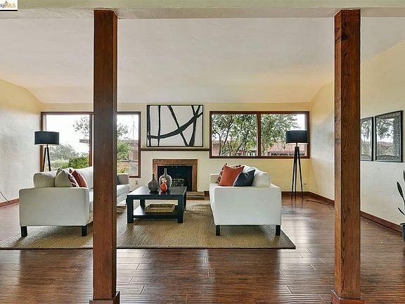 Mid-Century ranch home retains the original architectural style and offers all level living in the desirable Joaquin Miller Park neighborhood with 3 BR's & 2 BATHS including a master suite. Walk into a grand size living room with a fireplace and 2 windows on either side where you can enjoy the outlook towards the BAY! Set up a long private driveway this home offers a sense of privacy. The large deck and side yard offer great outdoor living! The kitchen has a great feel with plenty of cabinets, stainless appliances and the window overlooks the patio. A cozy eating nook is perfect for everyday dining. Right off the kitchen is the family room that has a great BAY VIEW! Built in desk makes a spot for the home office, and there's a built in corner seating area, and the laundry hookups are right there. There's room for play and just hanging out. The two car carport is attached. There's a basement area for workshop or storage.