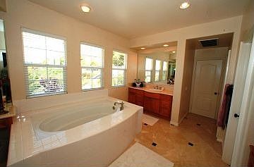 Private cul-de-sac street. Fantastic floorplan with kid’s computer station, bonus room, spacious gourmet kitchen with stainless steel appliances, large island eating area and open to the family room. Beautiful maple wood cabinets throughout the home and 16" tile floors with designer mosaic inlay and granite inlays. Each bedroom has a bathroom with marble counter tops and tile floors. The master bathroom has marble floors, marble counters, 2 vanities, his and her closets and an oversized shower with dual heads. The spacious bonus room has a balcony and plenty of room for pool table or whatever your needs. The adjacent computer station is equipped with all the wiring and work space necessary for the kids to do their homework. There is a downstairs bedroom suite tucked away for privacy. The downstairs office has French doors leading to the private courtyard with fountain. Fireplaces in the family room, living room, office and even an outdoor fireplace for evening entertaining. This home is located in one of San Diego's Blue Ribbon award winning top school districts including La Costa Canyon High School. Plenty of parks nearby as well as just a few miles to some of North County's most popular beaches. Low HOA fees and Mello Roos