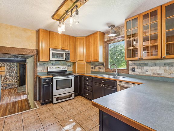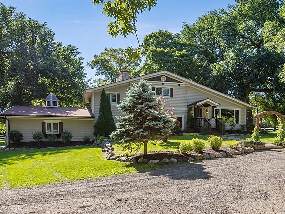 Here it is! Your new peaceful and serene property awaits you! As you turn into this beautiful tree line drive, you are greeted by this charming country home. Situated on 11 acres of mature trees, maintenance free fencing, pastures, horse barn and many out buildings. This updated 4 level split features hardwood flooring, unique ceiling finishes, gorgeous stone fireplace for cozy winter nights. Patio door off kitchen/dining area leads to a beautiful stone patio with a firepit. Your choice of 2 upper level primary bedrooms, one including a step down seating area and ensuite bathroom, all newly carpeted. Outbuildings include: 2 stall horse barn with plenty of room for tack. Heated pole shed with entertainment area, storage room and cold storage. New 60' x 104" pole shed with sand floor for potential indoor riding arena or ready for concrete. Unique 4 level split offers 4 bedrooms, 3 baths, family room, office, breezeway off attached garage. Kitchen offers newer cabinets, kitchen window, center island, dining area. Living room with hardwood flooring, double closet in foyer. New stairwell spindles, six panel doors, natural woodwork throughout. Home is approximately 2 Miles from Buffalo Lake.