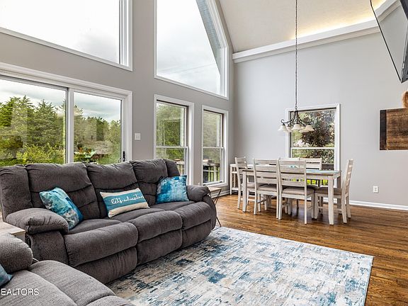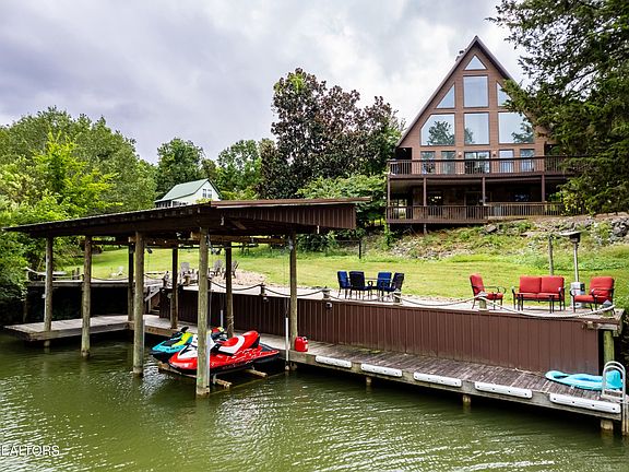MOTIVATED SELLER! Will consider all reasonable offers. Renovated Lakefront Custom Home w/. 78ac on TN River avail d/t job transfer. Main Home is 3100sf w/33' Cathedral Peak. Updates incl: New HVAC, Marvin Sliding doors, All New Kitchen w/Shaker Cabinets & quartz countertops, Refinished HW floors, tiled bath floors, all new lighting, 50yr Metal Roof only 7yrs old, etc. Lower Level has Private Access-Perfect for In-Law Suite. Large 2 level Dock, 35' covered boat slip w/6000lb lift, and 100' seasonal waterfront. 3 level garage w/Studio Apt. Lower level work garage has electricity, could easily store campers, boats, jet skis etc. Main level garages heated and cooled, single garage provides private entrance to 1150sf studio apt. Potential for a 2 BR Rental, College student, etc. Nice flat side yard, fenced. Dual Septic System Easy access to Maryville, Knox, Leonor City or Oak Ridge