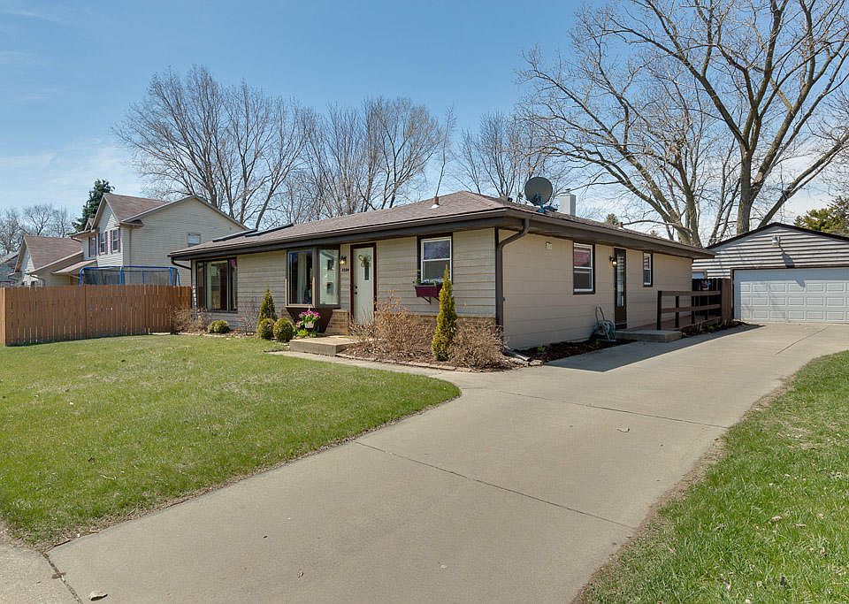 Ranch on DOUBLE LOT! There are 3 bedrooms, 1.5 baths in this well-loved home with a lovely sunroom off the living room. Nice kitchen with custom oak cabinets plus a huge island for stools seating. Master bedroom has patio door access to the wrap around multi-level deck. Partially finished lower level with a large workshop, an office or a play room, storage,and a large area to finish the rec room. The yard is fully fenced for privacy. 2.5 car detached garage with paved driveway. Many updates. Great family home!