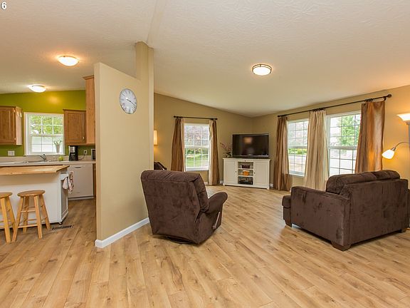 Beautifully updated and well maintained manufactured home on .64 acres. 3 bedrooms, 2 bathrooms with vaulted ceilings and beautiful new floors make this home feel even larger than it is. Laundry room and bathrooms have been recently updated. Enjoy the outdoors and the privacy of the covered deck with built-in benches in the backyard. Newly built 2 car detached garage has lots to offer, as does the expansive lot this lovely home sits on.