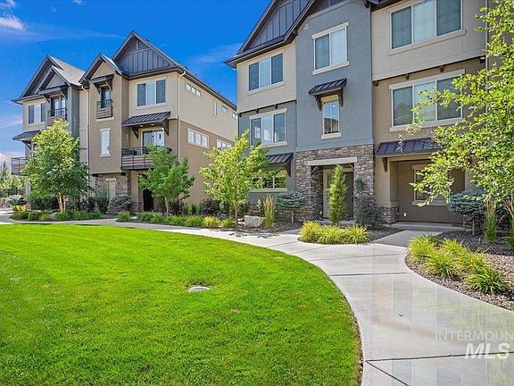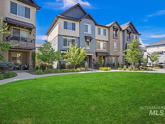 Stunning Barber Station townhome loaded with custom features. Its open concept, built-in shelving and natural light is sure to delight. Kitchen island/breakfast bar and countertops throughout feature gorgeous White Galaxy granite. High-end Bosch stainless steel appliances. Under counter and pendant lighting. White Oak hardwood floors, Alder wood Tamarack custom cabinets, built-in shelves and entertainment center throughout Great room, including a built-in desk and half bath. Primary bedroom has coffered ceiling, walk-in closet and bedside reading lights. En-suite bath with dual vanities, tile floor, granite countertops and floor to ceiling tile shower. Two guest bedrooms with full guest bath. Laundry room includes LG Washer/Dryer. Wood 2” blinds throughout home. Equipped with central vacuum system. Light and bright 2-car garage with custom epoxy flooring. Community pool, clubhouse and gym. Easy access to the Boise river and greenbelt. This home has it all!