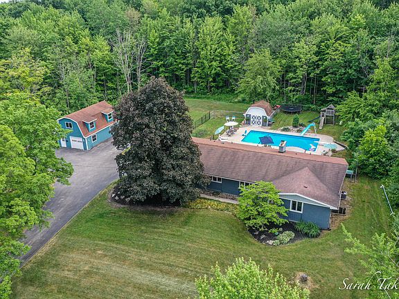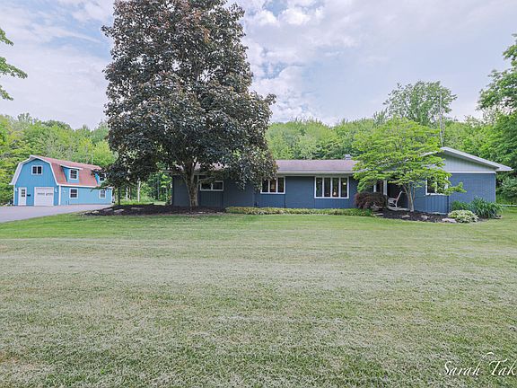 Drive up to your new oasis! The 2.5 acre property hosts a beautiful 4 bed (w/nonconventional 5th), 2 full bath ranch with a gorgeous chef's kitchen featuring additional prep sink. Open floor plan allows you to enjoy the fireplace from the kitchen, dining or living room with a large library off the living space. Outside you'll find an inground swimming pool with slide and diving board as well as a pergola to escape the summer sun and hot tub to help warm up during the winter chill. A double sided pool house contains the mechanics and a changing room with surround sound speaker system. Across the drive, enjoy the guest quarters with a full kitchen, full bath and its own laundry. The wooded lot backs to a ravine with lots of wildlife! Home is near the new Idema Explorer Trails.