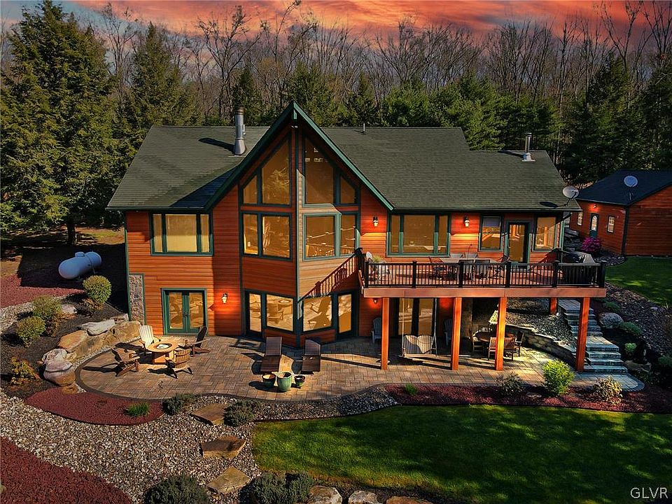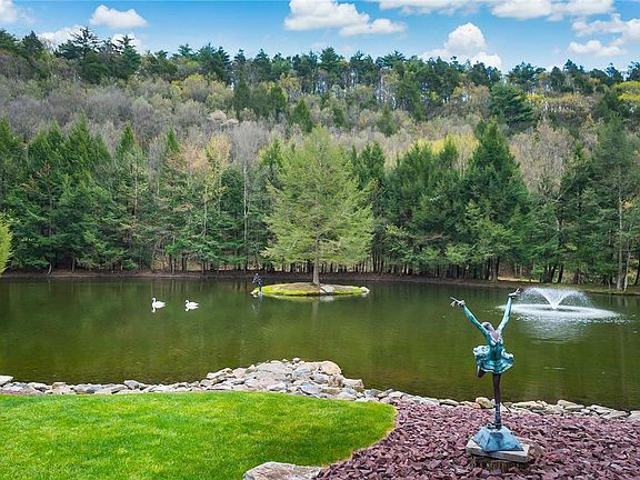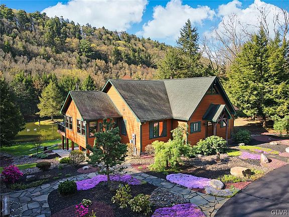 Discover the epitome of luxury and privacy at this stunning private retreat, sprawling across nearly 35 acres in the Beltzville State Park area. Conveniently located near the Route 476 exit and just 20 minutes from Blue Mountain and Big Boulder Ski Areas, this property offers an unparalleled escape. As you travel down the long, fully paved driveway, you’ll immediately appreciate the seclusion and tranquility that await. Upon arrival, be greeted by breathtaking views of the immaculately landscaped property and your own 2-acre pond, complete with a central island and a dramatic mountain backdrop. The serene White Oak Creek meanders through the property at the mountain's base. Plenty of space for toys with 4 car AND 2 car detached garages. This isn’t your typical hunting or ski lodge. The home boasts numerous exceptional features, including high-end granite countertops in the kitchen and bathrooms, which also have heated floors for added comfort. The A-framed great room with its 20-foot high ceiling, exposed wood beams, and expansive windows, offers stunning views of the pond and mountain. The unique Australian Acacia hardwood floors in the great room, kitchen, and loft add natural beauty, while the efficient geothermal heating and cooling system keeps the 4,300+ sq ft home comfortable year-round. Stand alone 20KW Generac generator with owned 500 gallon propane tank. The 28x12 composite deck overlooking the pond is perfect for grilling and entertaining. Very reasonable taxes.
