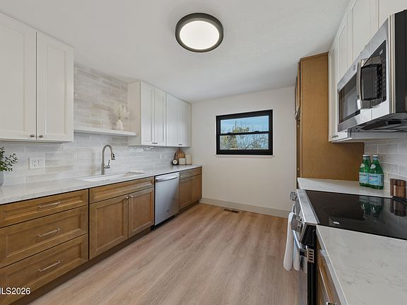 Welcome to 3320 Heights Drive, a fully reimagined showpiece in Reno's highly sought-after Old Northwest neighborhood. This home makes an immediate statement with its striking two-tone exterior, bold modern design, and tasteful wood accents that perfectly balance warmth and contemporary style. Inside, the transformation continues with a brand new modern kitchen designed for both everyday living and entertaining, paired with beautifully updated bathrooms that complement the home's clean, contemporary aesthetic. Every detail has been thoughtfully curated to create a cohesive, elevated feel throughout. Beyond the finishes, this home offers peace of mind upgrades including a new electrical panel, new sewer line, rare black vinyl windows, and solar panels for added efficiency. Head outside and enjoy a newly built deck ideal for hosting, relaxing, and taking in the surroundings of this established, desirable neighborhood. A rare blend of modern design, major upgrades, and an unbeatable Old Northwest location - this is a home that truly stands apart.