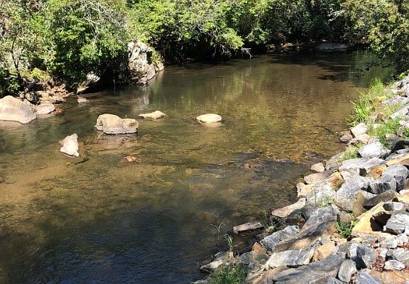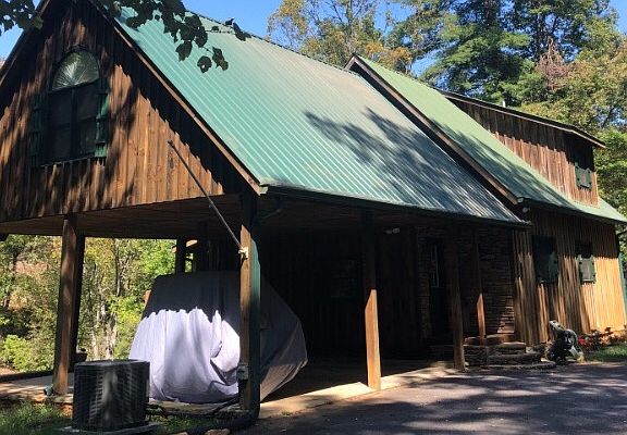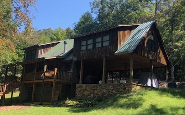 CREEKFRONT ON HIGHTOWER CREEK! Roaring 40 ft wide creek with mt trout just steps away from back door. Cabin style with cathedral ceilings and decorated beautifully! Just minutes to downtown Hiawassee and Lake Chatuge. Paved street access, fireplace, covered porch and much more to enjoy.