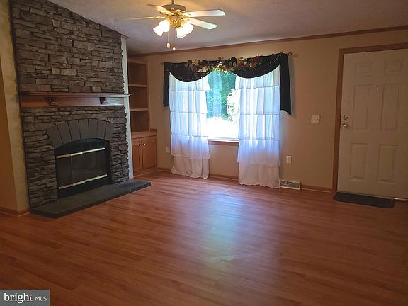 Over 1600 sq feet in this spacious double wide on a foundation. 2 beautiful fireplaces with stone accent. One gas, and one wood burning. Kitchen has loads of cabinets and countertop space which is perfect for anyone that likes to cook or bake. Nice size deck off the back of the home that over looks a wooded back yard. Metal roof was installed around 2 yrs ago. 2 sheds included!