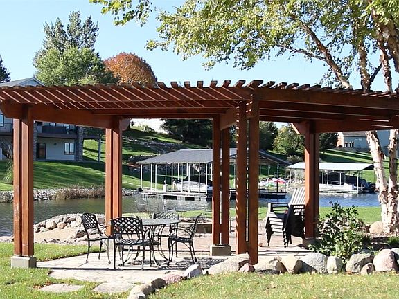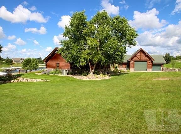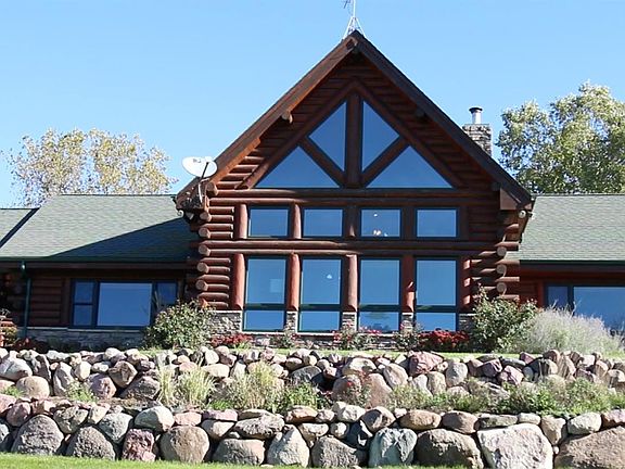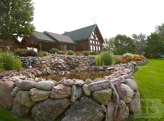 Log home masterpiece featuring every possible amenity....Nearly every room has a stunning features including the massive 1600' 3 stall garage with cabinets, storage area with additional sink, bathroom, air compressor, high mechanical room, security system, radiant floor heat in both home and garage, waterfall feature right by the covered patio that is that is conveniently located by the kitchen with high end appliances, Corian Counter tops, slate backsplash, abundant storage large living room with gas fireplace, south facing wall of windows. Lakeside pergola arbor with stone patio, sand beach (great for the kayaks & paddle boards), floating dock system for all the toys and highly manicured grounds with boulder rock walls and perianal flowers, lake water irrigation system. A magnificent home with a large list of spectacular features! Pre-qualified buyers shown by appointment please, the clients live here full-time.