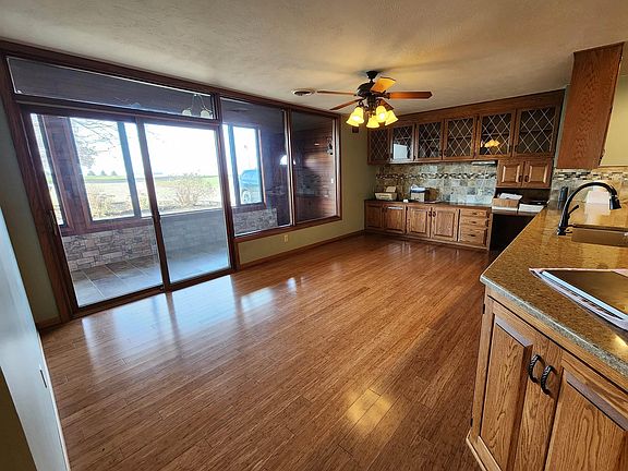 Don't miss out on this rare 3.37 acre acreage with an earth home only four miles West and one mile South of Sheldon! This earth home is nicely updated, in pristine condition and ready to move in. The kitchen has oak cabinets that is open to the dining and living area with beautiful hardwood floors. The large windows in the living room and four season room are amazing that allow plenty of natural light and a country view that is second to none. The gas fireplace in the living room will surely keep you warm as toast in those cold winter months. As you walk down the hall you'll find the laundry room, four bedrooms and two updated bathrooms. The one bathroom is a master bath with a new walk-in shower with onyx surround that was installed in 2022. The 3/4 hall bath has the same with a walk-in shower with onyx surround. As for the exterior it has storage galore! There is an attached single that has a floored attic above and a large 32' x 76' attached garage with a very large entry door that is 14' high and 24' wide. Perfect to store cars, trucks, boats and/or the RV. It also has two large shops, one that is 40' x 60', heated with a concrete floor and the other is 60' x 90' with a dirt floor. The roof is lined and replaced in 2012 with a vinyl liner and soil. (Transferrable warranty for $500 until 9/26/2027) See this one in person to appreciate!