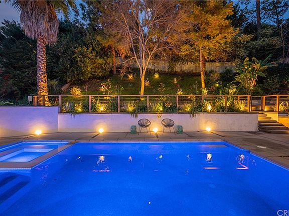LONGRIDGE ESTATES with fabulous city light VIEWS! Renovated 4 bedroom 3 bath home lives like a one-story all on 1 level PLUS a separate private upstairs home office/optional media room, studio, bonus room, etc. Showers of natural light shine throughout. Stunning totally private resort style backyard just completed summer of 2020 incl. pool & spa with solar, LED "light shows,' new pool equipment, custom outdoor kitchen, concrete slab counters BBQ/smoker, cook top, fridge, linear fire-pit & built-in fire-pit seating area, grassy yard & nightscape lighting you control from an app. Spectacular all white chef's island kitchen with quartz counter and every top-of-the-line Thermadore stainless appliance imaginable open to a large family room with vaulted ceiling, decorative quartz hearth fireplace, custom cabinetry and open to the adjacent dining with double glass single lite doors to the backyard. Spacious living room for the largest of gatherings. Master suite, a true oasis retreat with slider open to the pool and spa & includes a walk-in closet, spa-like master bath with oversize steam shower with dual seating and plumbing fixtures, double sinks and vanity. Additional amenities also include newly renovated secondary bathrooms, beautiful wood floors, plantation shutters, recessed lighting, wired for sound, newer AC, mostly all newer windows, some Milguard. Shopping, hiking, restaurants, freeways and the Westside are all close by this coveted and sought after neighborhood.