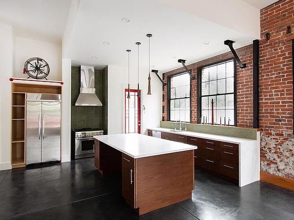 Historic Firehouse to rent in West Oakland Newly Remodeled 3 years ago, this original 1920s Brick Firehouse has been restored with polished concrete floors, redwood finishes and a minisplit for both heating and air-conditioning for hot Oakland summers. With 18ft ceilings, and large historic window openings, the building is bathed in south-facing light. The master bedroom has an en-suite bathroom and walk-in closet with extra storage. An open floor plan for entertaining between the kitchen and dining area. In addition to the main house, there is an office/studio space easily closed from the main house for both privacy and comfort. An automatic gate and off-street parking as well as a gated entrance for the unit. Front property shared with adu unit in the back of the property with shared entrance to the side of the property. (photo credit:Benedicte Lassalle) Owner pays for garbage No smoking