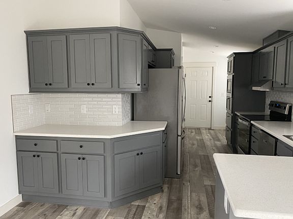 This home is a Rambler style, with 2 Bedrooms on one end and the Primary bedroom on the opposite end. There are 2 bathrooms as well that have ample space for dressing as well as enough room for 2 people to get ready to go at the same time. It has Quartz counter tops in the Kitchen as well as under countertop lighting. Plenty of cabinet space with a large pantry & snack bar. That are all made of solid wood. The appliances are all Whirlpool, including a self cleaning Range, French door bottom freezer and a dishwasher. There is a Sliding Glass door that opens onto a patio in a beautiful private back yard. Inside the Livingroom has a Vaulted Ceiling and a "Skyview Dormer". There is a 24x24 Double car Garage attached to the home that is insulated, sheetrocked, fire taped & painted.