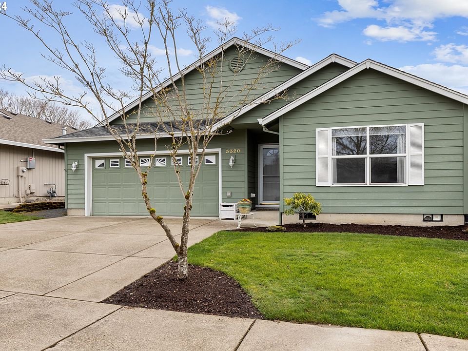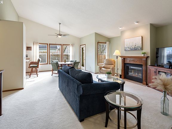 Beautifully maintained single-level home nestled in a prime location in North Newberg. With 3 bedrooms and 2 bathrooms, including a versatile third bedroom that could serve as a home office or den, this property offers practical living spaces for everyday life. As you step inside, you'll find a comfortable living room with vaulted ceilings and a gas fireplace. The dining room seamlessly opens to the living room and kitchen, creating an inviting and cohesive layout perfect for entertaining. The primary suite offers a walk-in closet and an attached bathroom with double sinks and a walk-in shower, providing comfort and functionality. Outside, the fenced backyard features a patio area and a toolshed for added convenience. Both the front and back yards are equipped with a sprinkler system, simplifying lawn maintenance. Conveniently located near parks and schools, this home offers a blend of peace and accessibility. With its well-kept condition, this property is ready for you to move in and make it your own - schedule a showing today!