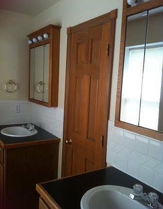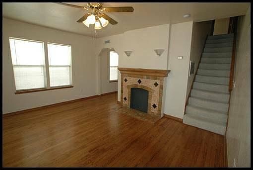 Over 1300 sq ft. Upstairs - Two bedrooms, each with ceiling fan, with full bath and separate vanity for each side in between. Downstairs - Living area with ceiling fan, Hall, Half Bath, and Kitchen/Dining, including range-top oven, frig, disposal, dishwasher, fold-out ironing board, and closet w/full size washer & dryer. Baths and Kitchen are tiled, one bedroom and stairs are carpeted, rest is hardwood floors. Faux fireplace upstairs and down. Secure building with entrance doors locked 24/7. Off-street parking areas in front and rear, which is enclosed and has a sitting area for picnics or just kicking back. $895 rent / $700 deposit. This is a NO SMOKING PROPERTY, NO PETS and NO Section 8. OPEN HOUSE SATURDAY, MARCH 7TH 2:00-4:00PM **Background Check required**