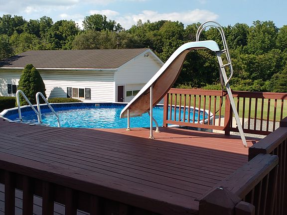 This 4-5 bedroom 1.5 bath house sits on 2 acres of sub-dividable land in the desirable Nazareth School District, and within minutes from all major Lehigh Valley thoroughfares. Multiple heating sources ensure your independence from fluctuating fuel prices. The oil/forced air system is supplemented with a coal stove and propane fireplace. The back door opens onto a large deck with swimming pool and slide. Recent renovations include new flooring throughout, vinyl replacement windows and updated kitchen and bathes. The over sized 30' x 24' garage includes shelving and work benches making it a great place to store and maintain all your recreational/vehicles. In addition, a large shed, and spacious parking area offer an ideal opportunity for a home based business.