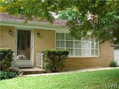 Motivated Seller"" This Allentown West End 3 Bedroom 1 1/2 Bath Solid Brick Ranch in Parkland School District has been all freshly painted. The Living Room has a brick wood burning Fireplace. The nice size Dining Room and Kitchen with Cherry Cabinets and Corian Counter-tops. Hardwood floors through out. Partially Finished basement adds even more living space. The One car garage was finished off into a Laundry room and spare room for an Office or 4th bedroom. Outside the rear Patio and nice back yard is a great place for summer fun and gatherings. The additional lot is wooded and provides versatility for extending the back yard or just leaving for more of a nature lovers extension to the property. Also offering a ""1 year HSA Home Warranty"".