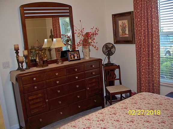 This home was built in 2005, has new Air condition, hurricane shutters and new laminate wood flooring in bedrooms, living room and Den/family room. Kitchen has a breakfast bar and glass sliding doors to the screen porch. Master is spacious and has two closet, master bath room has double sinks and walk in shower. The community offer a large heated pool, clubhouse and shuffle board . You are allowed two small pets. Low fee of $225 per Quarter.