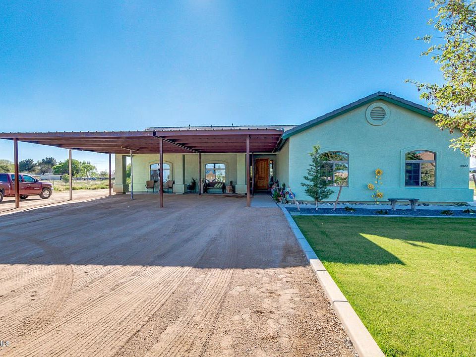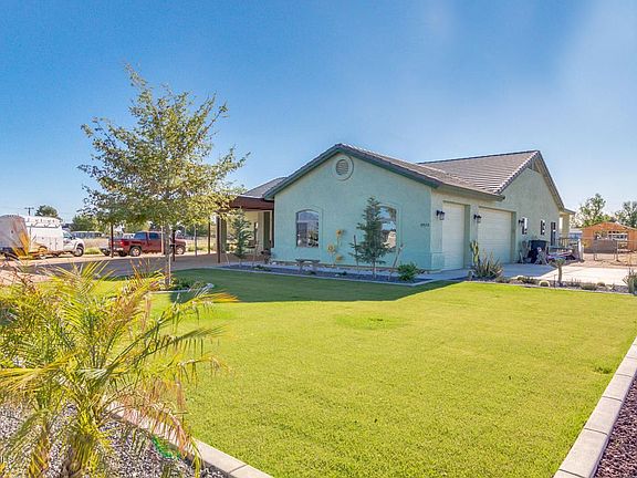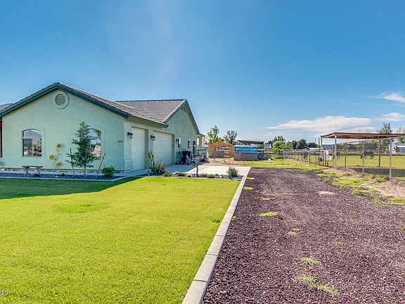 2+ acres Horse property, shared well, septic, flood irrigated lot, adjacent vacant lot to be sold along with house, so you get over 2 acres ! Built in 2015, oversize 3 car garage, front extended covered porch, lots of room for your toys! Nice open floor plan, with granite counters in kitchen and bathroom, 4 /2, tile in traffic areas, carpet in bedroom, huge laundry room with sink and granite counters, all stainless steel appliances in kitchen convey, exit door from master bedroom to back covered patio; front nice grassy area with automatic watering system, all chain link fence. Gas stove in kitchen is hooked up to a propane tank, walk in pantry, walk in closet in MB and lots of shelves around for your decoration! No HOA. Two parcels on contract: 502-47-016C & 502-47-016