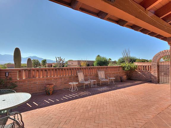 Welcome & enter into this Beautiful Home through gated courtyard. Santa Rita Mountain Views at your door step. Enclosed foyer leads into an immaculate home. Great Room open to the Kitchen & Dining area, Slider Door showcases the Awesome Views. Kitchen w/Skylight, Breakfast Bar or Desk, Appliances included. This home is immaculate/ well maintained. Dining room opens to the Arizona Rm or Den/Office. Hallway and Master Bath have been updated w/ Corian Counter tops. Bedrooms are spacious, Master has a Slider to the back Patio area, Walk in closet and Master Ensuite. Step from the AZ Room onto the Gorgeous outdoor living area, Fountain for peaceful sounds. Lot is over a 1/4 acre. Garage is oversized, workbench, storage cabinets, long double driveway. AZ ROOM ADDS 300 MORE SQ FT * A MUST SEE*