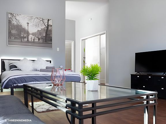 Available to be rented unfurnished, or with the pictured furniture included at the same rental price.