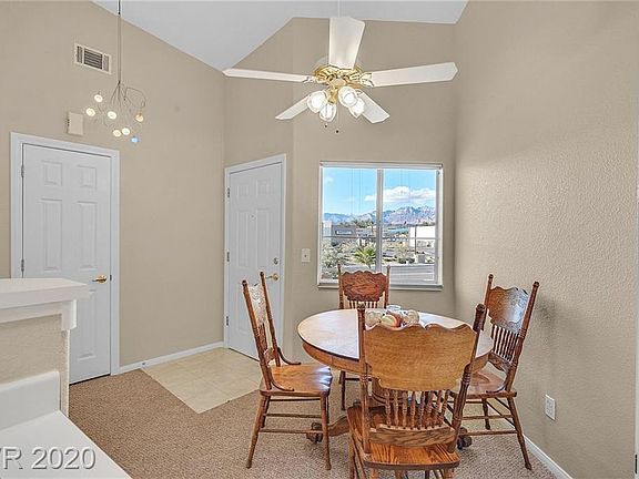 Location, location, location! Sharp looking, freshly painted 2 bedroom condo on the 2nd floor with mountain views from your breakfast table and the 2nd bedroom! The separate owner's suite features a jetted tub and direct access to the screened in balcony! A gas fireplace adorns the living room and can be turned on and off with the flick of a switch! The whole interior was just freshly painted! Berber carpet in the bedrooms & living room and high quality Luxury Vinyl Plank in the kitchen and bathrooms! Vaulted ceilings! Adjacent to the community pool & hot tub! Convenient to parks, Downtown Summerlin, schools, public transportation & minutes from the airport, T-Mobile Arena, the new Raider's Stadium & the world famous Las Vegas Strip! This would make a great home or investment property!