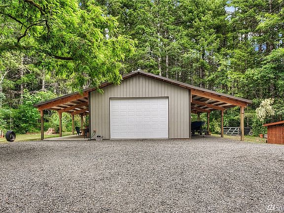 4.3 acre Farm & Big Shop 15mins to W.Oly or Shelton! Covered porch & original 1938 hardwoods plus modern upgrades throughout: glass French doors to newer wood decking, NEW roof, plush carpeting, wood burning stove with 2yr supply of split & stacked firewood ready to go & ceiling fans too. All appliances stay & miles of countertops means everyone can help the cook prepare meals. Large animal shed & 3 coops for included chickens, plus orchard, hay storage & circular driveway for EZ access.