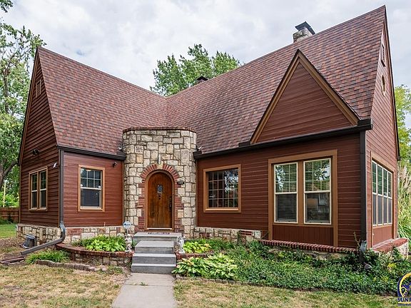 Discover your dream home where modern amenities meet timeless charm. Nestled on a sprawling nearly full-acre lot, this enchanting property boasts a character-filled exterior with newly replaced siding and fresh paint. Inside, the allure continues with beautiful hardwood floors, original glass door knobs, and elegant arched doorways. The newly remodeled kitchen shines with canned lighting, new countertops, stainless steel appliances, sink, faucet, and cabinetry, blending seamlessly with the home's historic features. The primary suite offers a full bath and an enormous walk-in closet, plus two additional walk-in closets for ample storage. Enjoy year-round comfort in the finished all-season room, perfect for an office or cozy sitting area. Step outside to the newer deck with awning/sails, ideal for outdoor gatherings. The double attached garage includes a workshop, while the basement features a family room, half bath, laundry, storage, mechanical room, and a hobby/workshop area with walk-up/walkout access. This versatile space is perfect for a home office, an older child seeking independence, or potential rental income. Additional notes: newer water heater and AC + the shop area includes a large secure area for RV, boat, or trailer. In walking distance to the Topeka Civic Theater and the pickleball courts; joy around every corner! Make this unique and inviting residence your forever home!