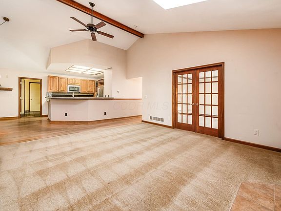 Open Sunday, 12/14, 1-3! Discover the perfect blend of comfort and convenience in this rare, 3-bedroom ranch in the sought-after Scioto Run neighborhood. It has an open floor plan, with a vaulted Great room with skylights, that opens to the Kitchen and Living rooms. Step outside to enjoy the screened porch and expansive TimberTech deck, ideal for hosting friends or savoring a quiet evening under the stars. The fenced-in yard with numerous trees offers privacy, complete with a storage shed with electric and concrete pad. The front yard has a 7-zone irrigation system to keep your landscaping pristine. The side-load 2-car garage provides ample storage, with pull-down access for additional overhead space. The low-maintenance brick and stucco exterior is beautifully accented by landscape lighting. Updates include stainless steel appliances, a new gas log fireplace with a remote starter (2023), and remodeled primary bath, featuring a large walk-in tile shower, double vanities, and a luxurious, heated Tuscany ceramic floor. Convenient first-floor laundry and an adjacent half-bath. Portable generator hookup for peace of mind. Other upgrades include a new gas furnace with humidifier and A/C (2022), a 40-gallon electric water heater (2020), and insulation in the garage and crawl space. Radon mitigation system is already in place and roof and gutter guards installed around 2016.