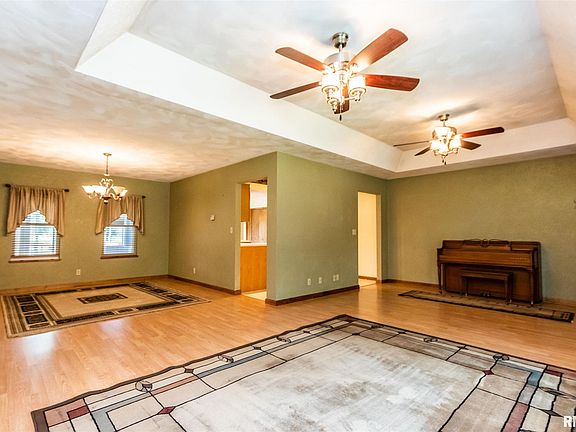Great ranch home located on the Golf Course in Pekin! This 1872 sqft home features a large living room with coffered ceiling, a large dining room, a kitchen with newer appliances and an informal dining room, a 4 season room with views of the Golf Course, a big master suite with jetted tub and separate shower and two additional bedrooms. Outside is a 2 stall garage, a covered front porch, a deck and level yard. Updates in the home include a roof in 2018, new ceiling fans, a radon mitigation system, and some new appliances within the last 3 years. Come take a look today!
