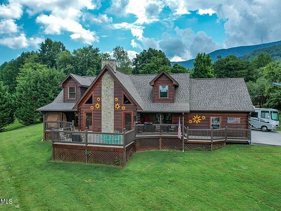 Buyer's could not perform after inspection and appraisal have been satisfied. Back on Market. EXTRAORDINARY 2800 sf log home on elevated one acre in desirable Wears Valley, with views to inspire! Upon entry, the ''Sunflower Lodge'' boasts cathedral ceilings, massive great room with stone fireplace and picture windows overlooking expansive front decking and yard. The back sun room looks over the back yard and terraced gardens, New LG stainless steel kitchen appliances, new Samsung washer and dryer, barrel dry/steam sauna. Upgrades include new 100 mph architectural shingle roof, encapsulated crawlspace, water filtration and water softener systems, parking pad for a boat/RV (with electric), central vacuum. Home is pre-wired for surround sound, intercom/audio system, ADT security system and electric pet fencing. Hardwood floors and tongue-and-groove ceilings grace both lower and upper floors. Berber carpet in upstairs bedrooms. Ceramic tiled bathrooms throughout. The laundry room, off the kitchen, has cabinets and a large pantry. Primary bedroom is on the main level, and opens onto the front deck. It includes a large walk-in closet and large en suite bath with jetted tub, separate shower and dual vanities. An en suite bathroom is off one large upstairs bedroom and the landing. Both upstairs bedrooms have dormer windows with good North light. Sublime Wears Valley setting is minutes from it all: GSMNP, fishing, hiking, shopping and mountain attractions. *Making it ideal for a primary, secondary home or rental investment. Projected income for overnight rentals is $91,500 Gross per year. Shown by appointment only.
