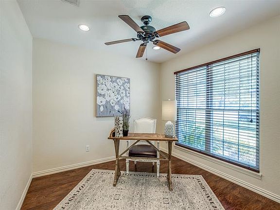 Fall in love with this meticulously maintained & updated 1 story home. Enter to find a welcoming foyer & executive office that can also serve as a 2nd dining. Wood look floors grace much of home & spacious living room with decorative electric remote fireplace, custom wood mantle & wall of windows revealing the private yard with sprinklers, wood fence & extended patio ready for relaxation. Split floor plan with over-sized owners suite in a wing of its own features a private bath with huge master shower with seat, double sinks & walk in closet. Kitchen exudes timeless beauty with abundance of 42in. custom, wood cabinets & tumbled stone backsplash opening to a counter bar for additional entertaining seating.