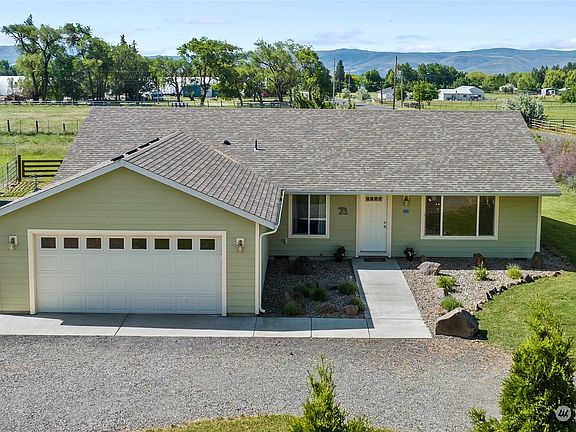 Welcome home to this well maintained single story 1,664sqft, 3 bed/1.75 bath house on 1.53 acres just east of historic downtown Ellensburg. Pull in to the circular drive off the private lane & walk in to the vaulted great room that is full of natural light. The open concept kitchen is great for entertaining w/ an island for guests to sit at & ample cabinet storage options for cooking. If you need some morning sun to start the day with your coffee or tea, just take a seat on the protected back patio area & look out over the fenced pasture. The 1.53 acres is enough for some space from the neighbors, but not too much to manage. Room for a project & shelter for an animal, the shop/barn is a must have. Mature landscaping surrounds it all too!