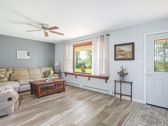 Experience comfortable country living in this 3-bedroom, 2-bath ranch home on 3 acres, located within New Prairie Schools! Inside, both bathrooms are totally redone. Fresh paint throughout the interior and home exterior. New carpet and LVT flooring are ready for you. The house is well-lit with updated lighting and has a brand-new tear off roof installed in 2022. Some other notable improvements are a new front door, garage door, added recessed lighting, freshly stained front and back decks, new floor heat registers, kitchen sink, and more! Large & very clean partially finished basement for added interior space! Step outside to find a perfect space for entertaining. There's also a large pole barn with power and water, plus extra out buildings for all your hobbies or toys. Part of the pole barn has a concrete floor workshop with other side perfect for many uses. A small section of the back property is currently being farmed. New owner can decide if to continue in future years. Passing septic inspection already completed! Furniture & contents are negotiable. Don't miss this chance – schedule a showing with your realtor! **Agents--see remarks**