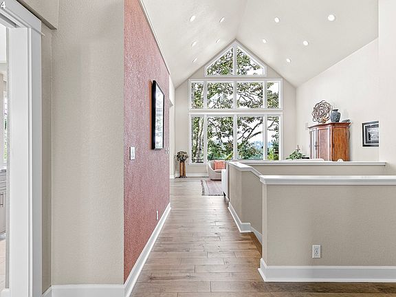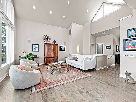 The views from this SW Eugene craftsman contemporary home are simply stunning! Enjoy a serene lifestyle with large vaulted ceilings, hardwood floors, light-filled rooms and windows that capture the gorgeous surroundings. Stylish gourmet kitchen with granite counters and glass backsplash, heated tile flooring, pantry and custom light fixtures. Main-level primary suite is complete with large walk-in closet and en-suite bathroom with new cabinets, heated floors, solid surface counters, separate soaking tub and glass shower. Plenty of room for everyone with a private bonus room, lower level family room with wet bar and wine fridge, and ample outdoor living areas to relax and enjoy. The upper deck has been sealed underneath, providing a "ceiling" for the lower patio, so you can enjoy outdoor spaces rain or shine! Additional updates include: new exterior paint, fresh paint in primary suite, bonus room and family room, new water heater, and downstairs bath now has a heated floor and towel warmer. This home has been meticulously maintained and is perfect for solitude and entertaining and everything in between!