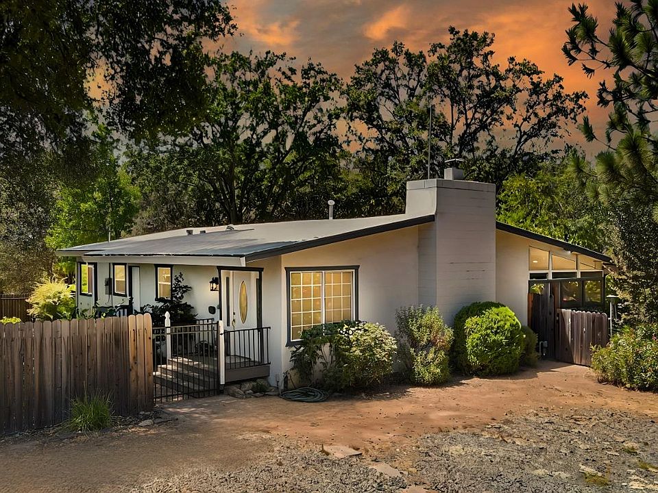 Discover your private haven with this charming 3-bedroom, 2-bath home, nestled on nearly 5 acres of tranquil, fully fenced bring your horses. Step into the cozy, open-concept living space and immediately notice the brand-new laminate flooring, which adds a modern touch, beautifully complemented by the high open-beam ceiling and large inviting fireplace. Fresh paint and new carpeting throughout the home provide a clean and updated feel, while dual-pane windows and new mini-split systems ensure year-round comfort. Highlights include a spacious screened porch, approximately 10x30 feet, perfect for relaxing or entertaining, and a detached garage with a workbench for all your projects. This property offers more than just a home; it's a lifestyle. There's ample space for a family, pets,goat, and potential expansions such as an ADU, barn, or workshop. The possibilities are endless! Create your personalized retreat, where every day feels like a getaway. Imagine weekends spent tending to your private farm, cultivating a garden, or exploring sustainable living, all within your reach. This is your chance to claim your own slice of paradise and make this house your dream home.